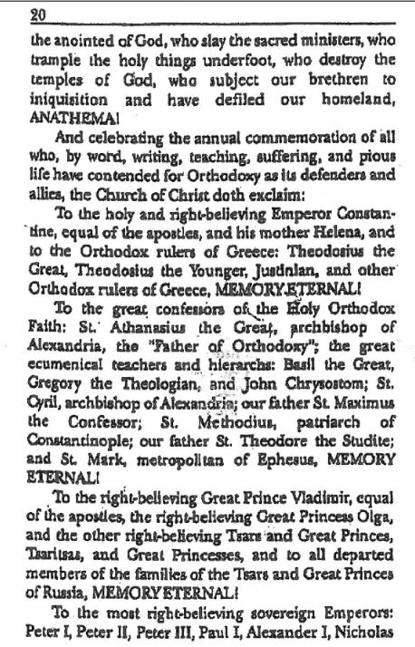 *J. Gouillard, ” Le Synodikon de l’Orthodoxie. Edition et commentaire”, Centre de recherche d’histoire et de civilisation byzantines. Travaux et mémoires 2 (Paris, 1967), p. 59; also Triodion (Athens, ed. Phos, 1958), p. 160.