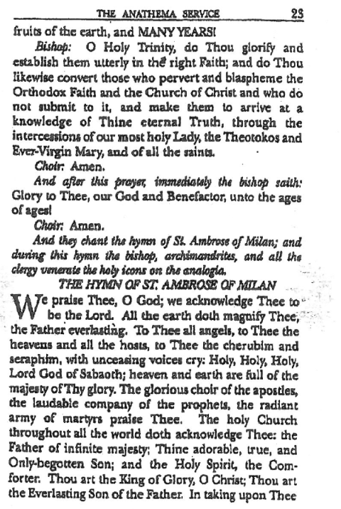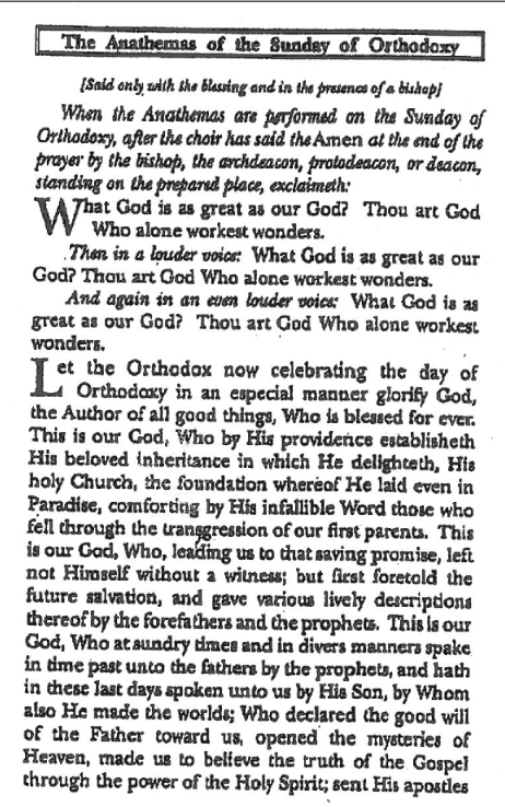It is not astonishing, therefore, to find out that every year, on the first Sunday of Lent–also known as the “Sunday of Orthodoxy”–all Byzantine Orthodox churches resounded with formal and repeated anathemas against “those who follow the foolish opinions of the Hellenic disciplines” and particularly against those “who considered the ideas of Plato [the ‘Divine Ideas’ or ‘Forms’ -T.S.] as truly existing or believe (with Aristotle) in the eternity of matter.* These anathemas were first issued in the eleventh century on the occasion of the condemnation of the philosopher John Italos, but their inclusion in the liturgical Synodikon of the Sunday of Orthodoxy gave them permanent significance. -Fr. John Meyendorff, “Introduction,” Gregory Palamas: The Triads, The Classics of Western Spirituality, pp. 10-11, 115
